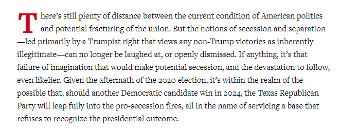 Secession and state fracture is only going to become more appealing to the Trumpist right. And after Jan. 6, and developments in Texas in the past two years, it's time to stop dismissing it out of hand.