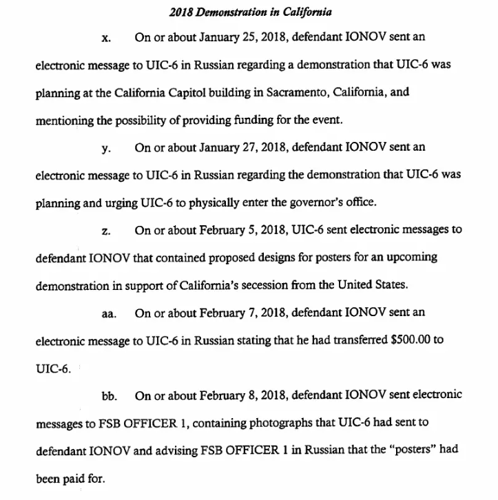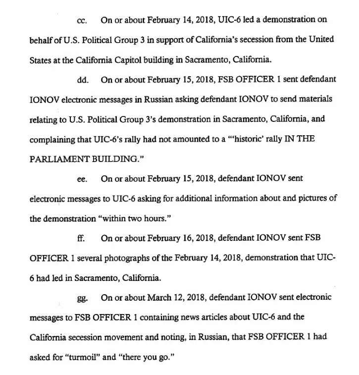 Two of the groups mentioned (but unnamed) in this indictment for working with Ionov are @YesCalifornia, the main California secession group, and Uhuru, a Black nationalist separatist movement working with Ionov through earlier this year.