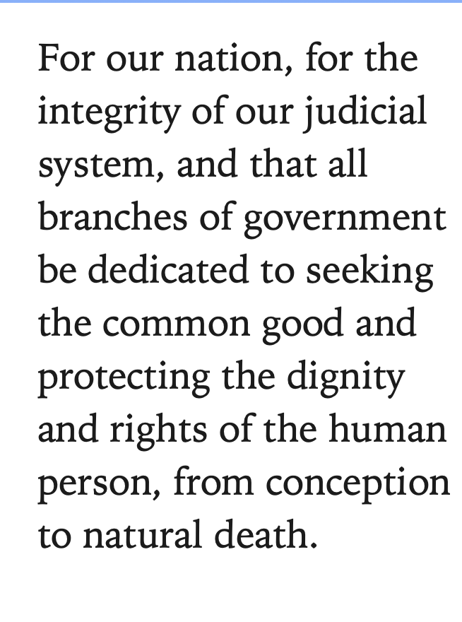 In thanksgiving for the decision by our Supreme Court to overturn the unconstitutional decision of so many years ago that led to millions of lives lost, hearts broken, consciences darkened, and souls crushed. And help us now to cultivate a civilization of Life and Love. Amen!