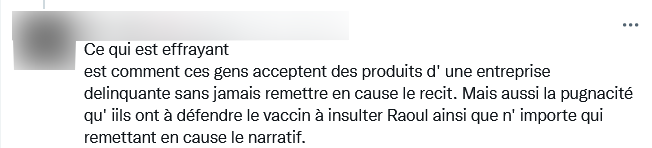 La 2e c'est que Pfizer n'est pas au-dessus des lois et ça c'est une très bonne chose. Cela démonte en outre le narratif selon lequel il y a un gigantesque complot entre BigPharma et les Etats.