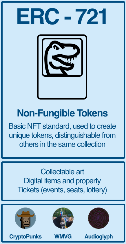(8/15) ERC-721 tokens are most commonly referred to as NFTs (Non-Fungible Tokens). These tokens represent unique or identifiable items (usually) within a collection. This includes PFPs, collectable art, property, etc.