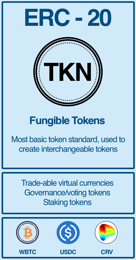 (7/15) ERC-20 tokens are the most basic token standard, representing the vast majority of tokens available today. This includes everything from governance tokens, ve-tokens, stablecoins, etc.