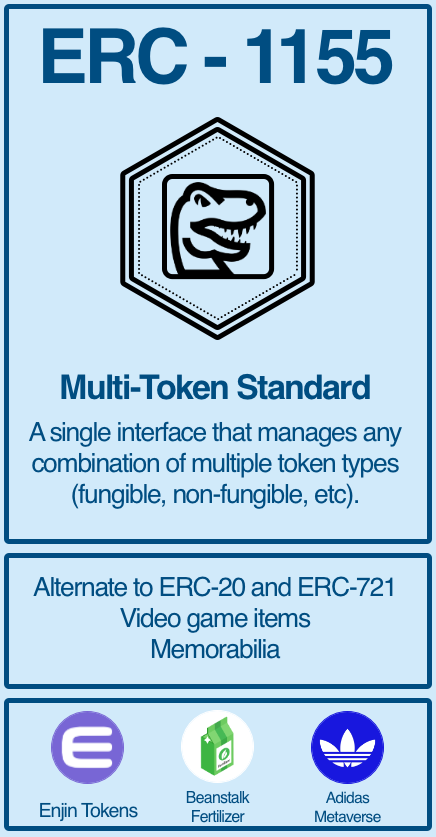 (9/15) ERC-1155 tokens combine properties of both ERC-20 and ERC-721 tokens, providing a single interface that manages any combination of these token types. This can be used as a more modern alternative for ERC-20 or ERC-721, and has unique properties optimized for gaming.