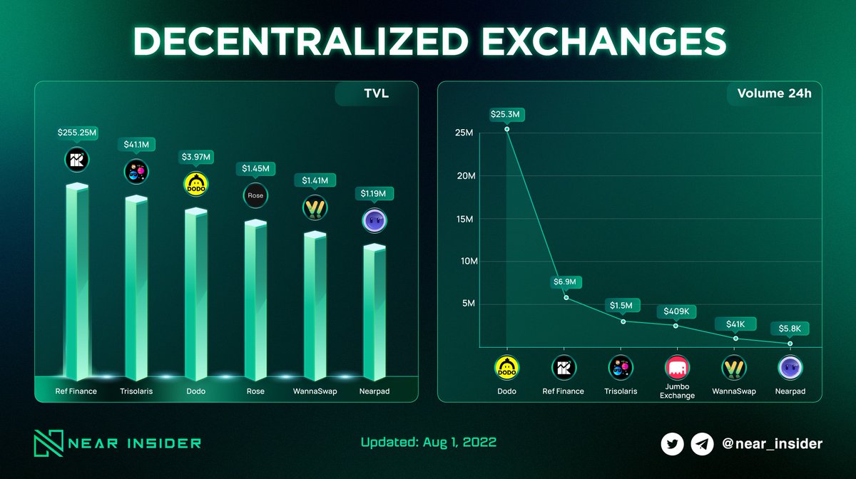 Regarding this piece, @finance_ref cannot be ignored. Ref Finance is one of the first DEXs on NEAR, actively built, developed, and attained more breakthroughs than other DEXs in the system (side comparison).