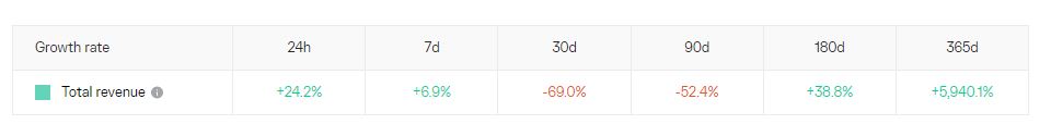 NEAR's revenue growth in the last 180 days is still maintaining high, about 145%. This makes @NEARProtocol among the top of the best-growing blockchains, surpassing ETH & BSC.