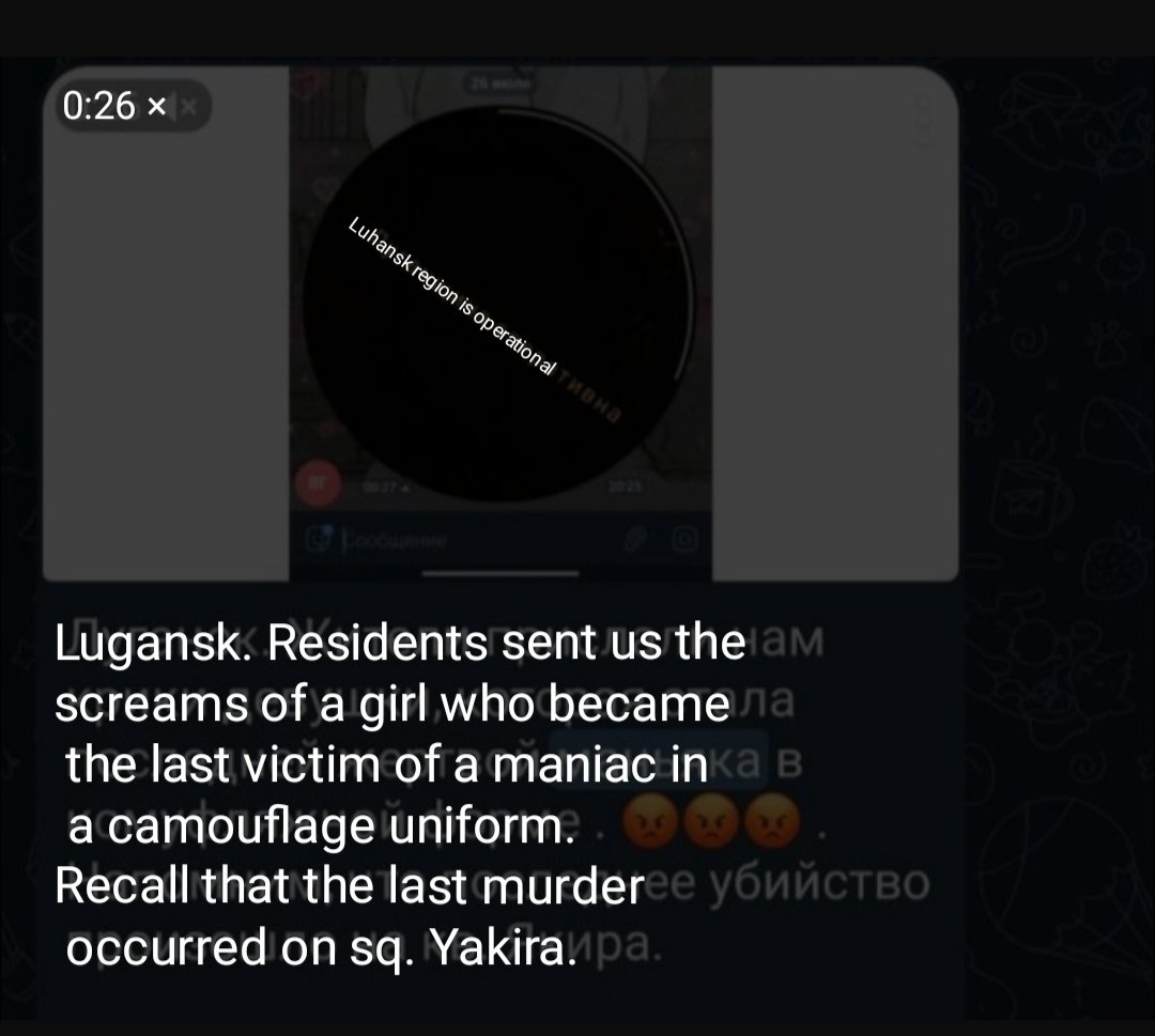 these are screams that were dropped into one of the Luhansk Telegram channels, this victim was killed after Alina