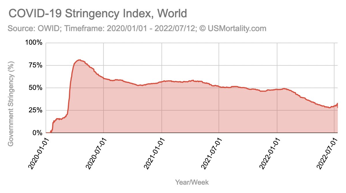 Currently world stringency is at 31%, maximum was at 81%.