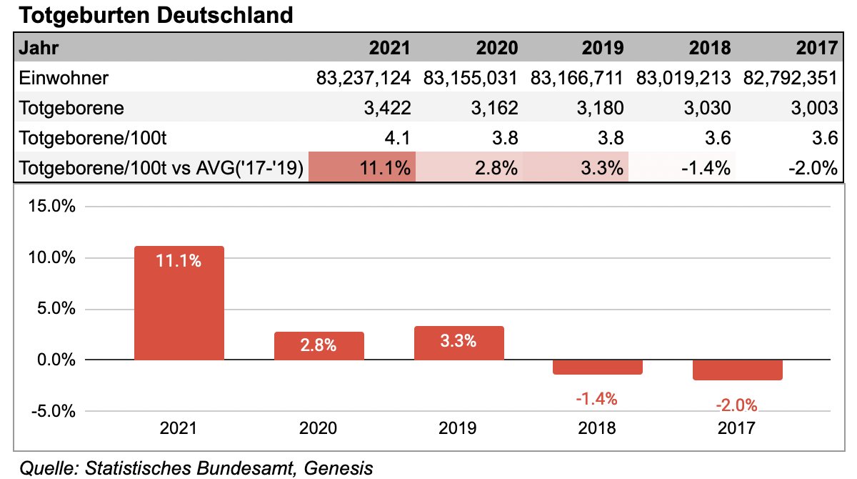> Im Jahr 2021 + 11.1% mehr Totgeburten, als noch im 3 Jahresdurchschnitt vor der Pandemie.