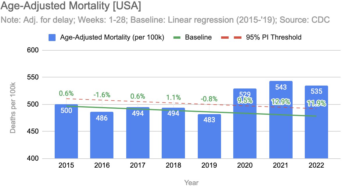 > YTD, same mortality as last year, but higher excess, due to decreasing baseline.