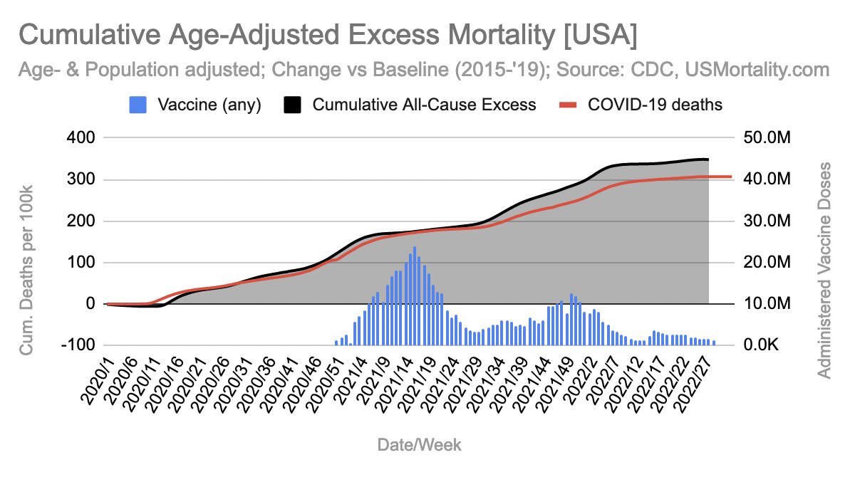 Year-to-date: Also highest excess in the pandemic so far, though on par with last year, in absolute numbers.