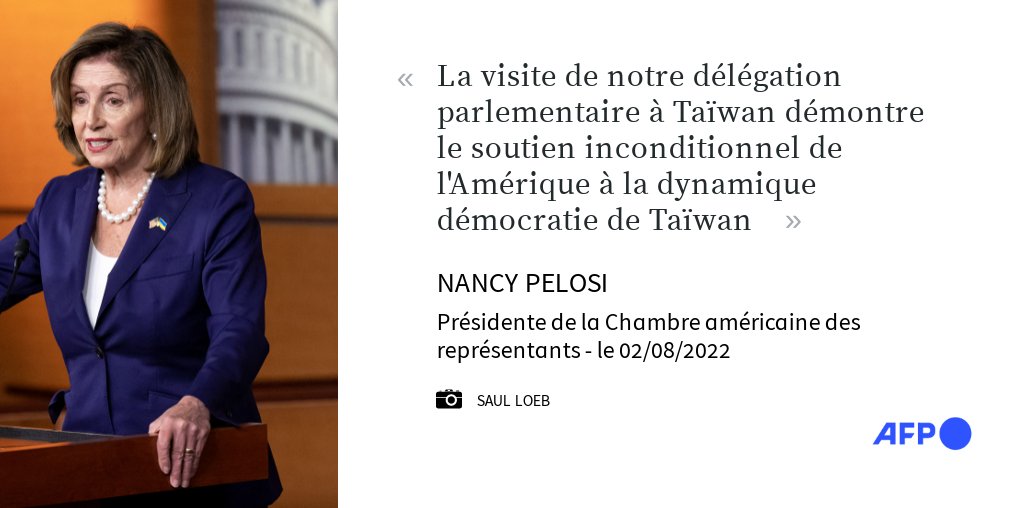 Pour Taipei, la visite de Nancy Pelosi montre le soutien américain "inébranlable" à Taïwan #AFP