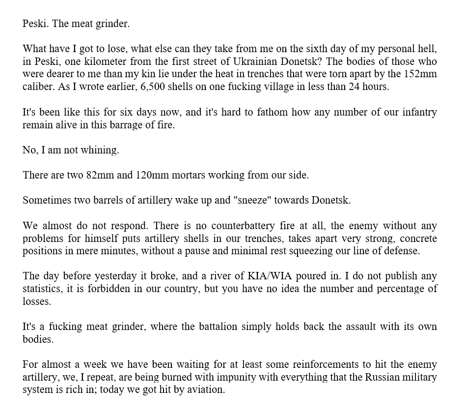Uh, the DPR Deputy Minister of Information Bezsonov says that AFU hit the prison in Yelenovka with a HIMARS missile. That's where Ukrainian POWs are held. He says 40 dead, 130 wounded so far