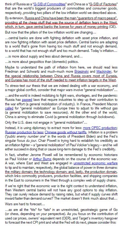 현재의 인플레이션을 이해하기 위해서는 프리드먼 보다는 브레진스키를, 슈바르츠 보다는 맥킨더를 더 참고 해야 할 것이다.(금융 공학 보다는 지정학을 더 우선해야 한다는 의미)