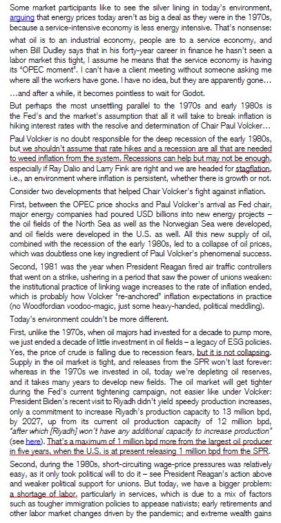오늘날의 인플레이션은 수요보다는 좀 더 공급적인 요인이 크며, 내부 정치적이기 보다 지리정치적이다.