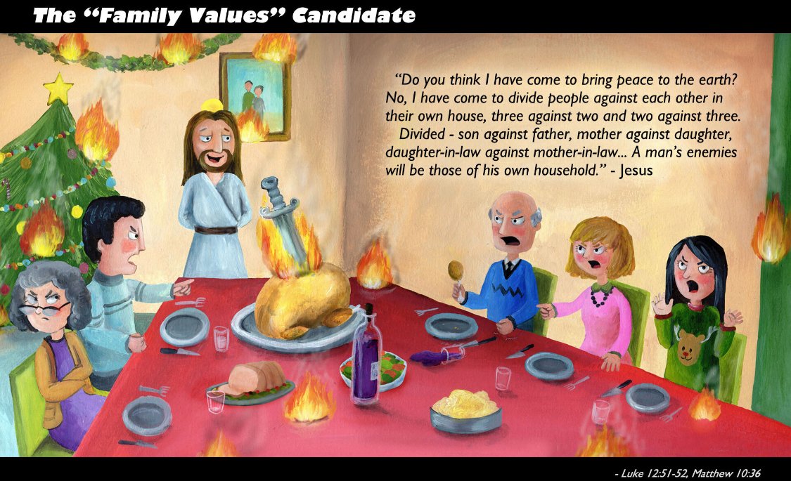 The Family Man says he did not come for peace on earth but to divide people against each other. Make a mother against a daughter, a son against a father.