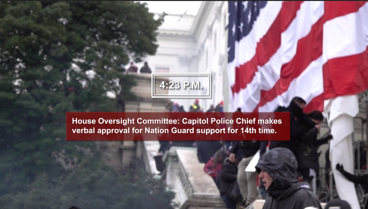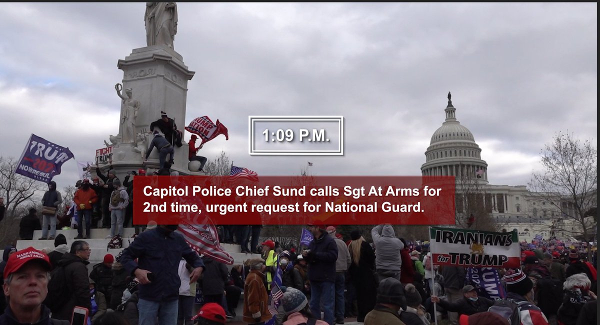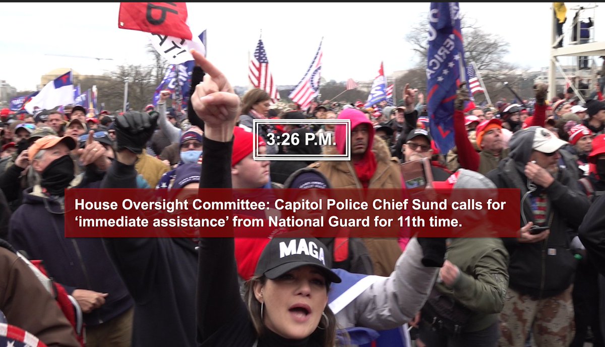 #11 At 3:26, house oversight committee later reports, Capitol Police Chief Sund calls for immediate assistance from the National Guard, for the 11th time.