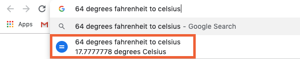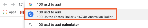 If you need to convert currency, you can do that in both the omnibar and search results, too. To perform the calculation in the omnibar, use this formula: [value of first unit] to [second unit].