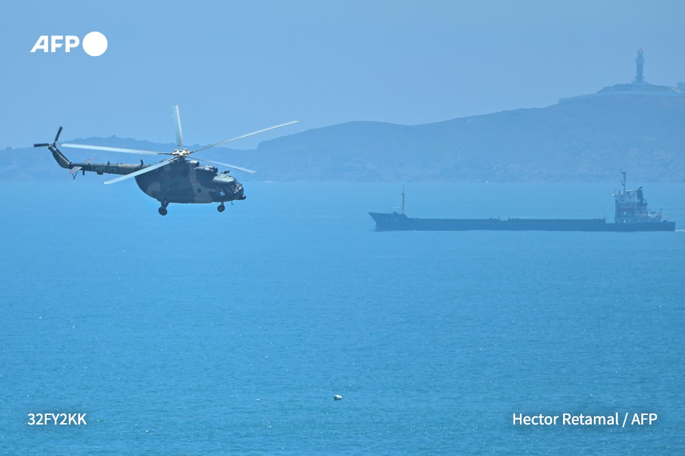 Des journalistes de l’AFP ont vu plusieurs projectiles non identifiés s'envoler dans le ciel vers la mer, suivis de panaches de fumée blanche depuis une île chinoise situé près des manoeuvres 2/5