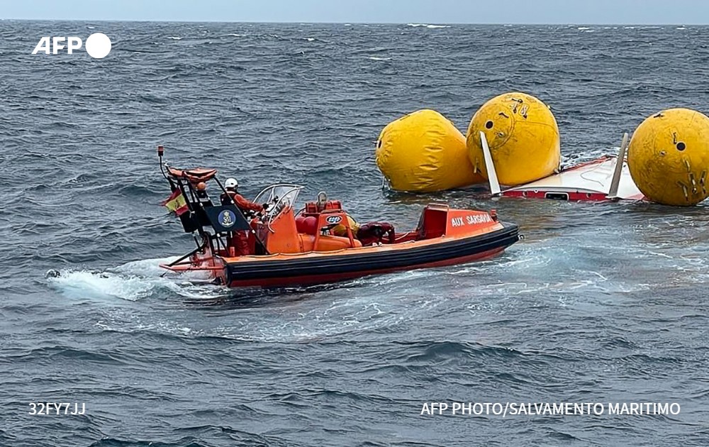 [🧵]Une nuit en pleine mer, coincé sous son bateau renversé : le skipper français Laurent Camprubi a été secouru in extremis au large des côtes du nord de l'Espagne après avoir passé 16 heures sous la coque de son voilier, dans une poche d'air de 30 centimètres #AFP 1/7