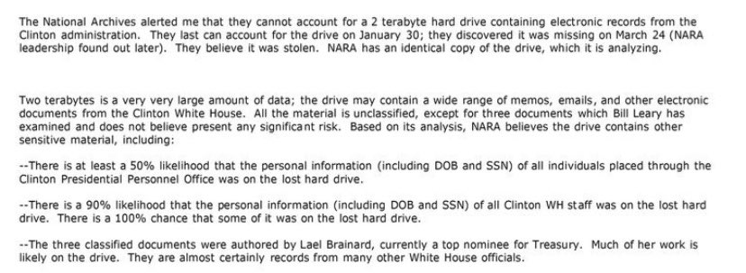 I don’t remember the @TheJusticeDept suing anyone over the missing two terrabyte drive with Clinton White House emails on it. The ones that were stolen.