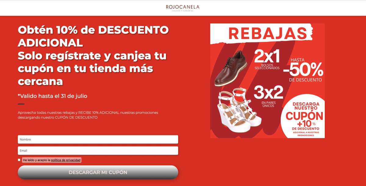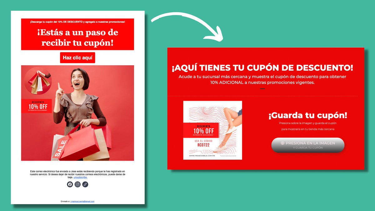 🎯 Objetivo: No solo que se descarguen el cupón sino también empezar a crear una base de datos de contactos para ofrecer más ofertas en el futuro.