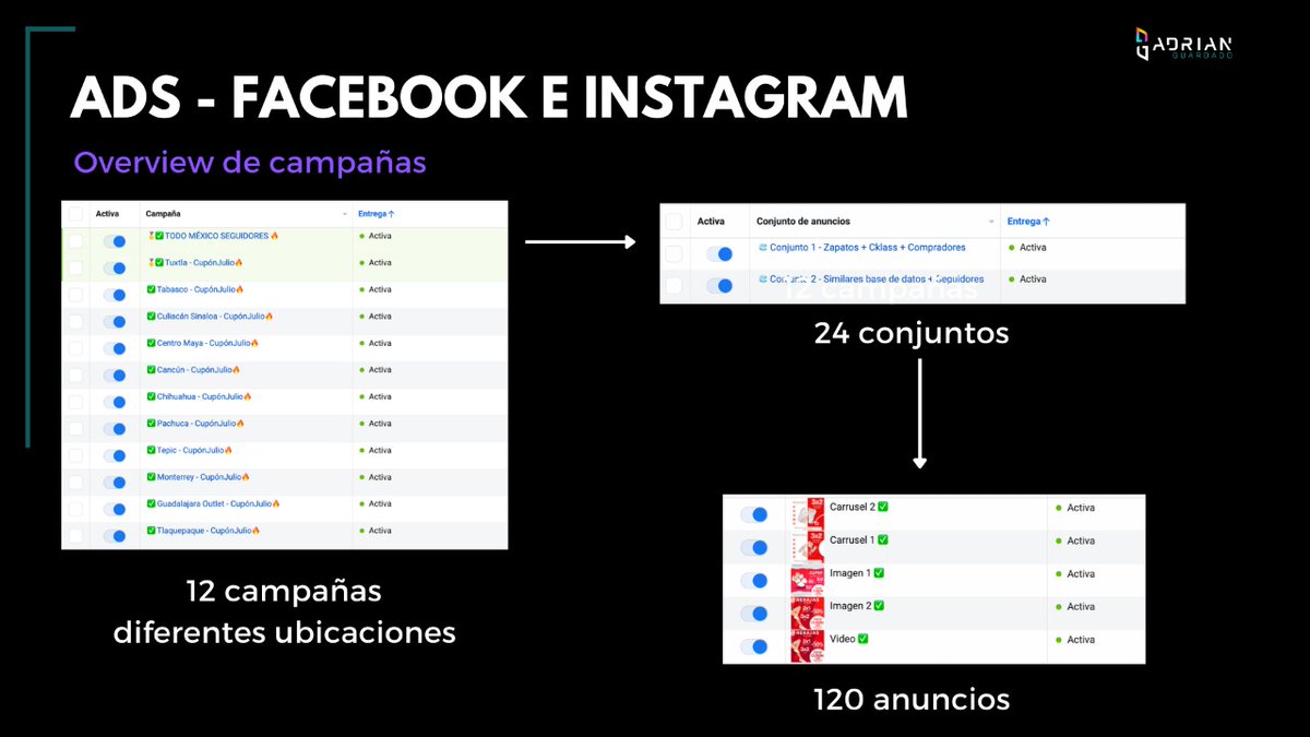 En este caso nuestro usuario utilizo Facebook ads con una estructura de anuncios así: