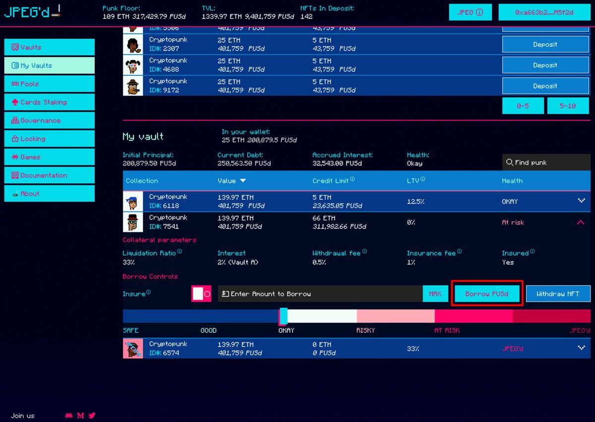 By depositing your NFT into the vault, you will be able to mint $PUSd (the native stablecoin) against the NFT. You can either LP with $PUSd or swap it for something else to pursue other endeavors.