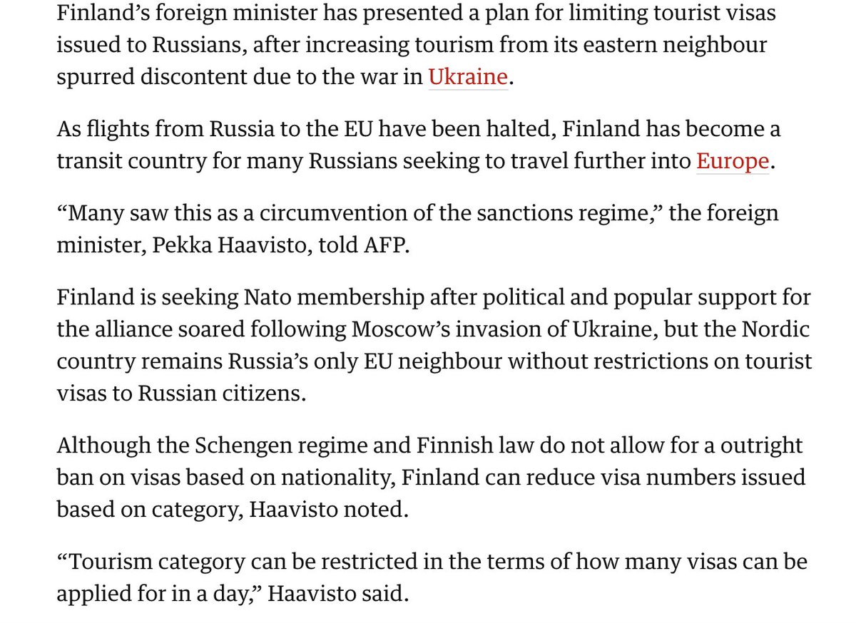 BREAKING: Finland is presenting a plan to limit tourist visas to Russians