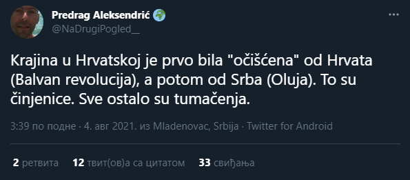 Person/team behind the @admirim Twitter (mis)activity had, of course, exploited this myth for spreading the hate speech against the Serbs