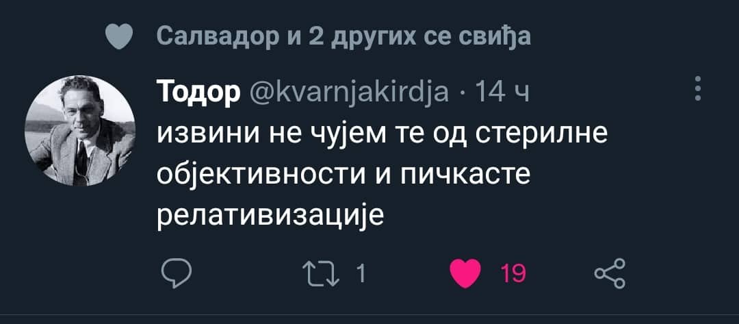 In the sea of the ''Balkan expert'' profiles who's aim is to inform the public on the Balkan events, his approach is rather based on Jasmin Mujanović's style of tweeting, which I like to call ''industrial level activism''