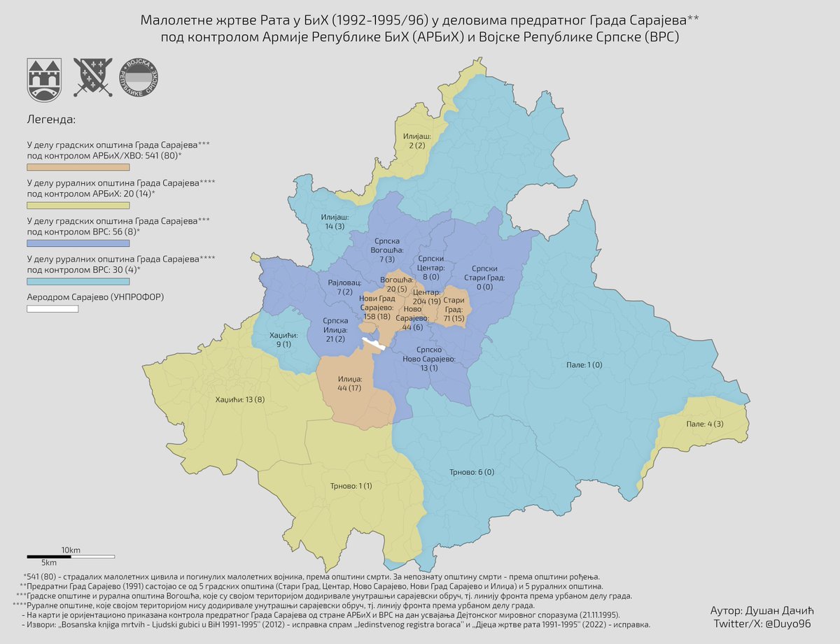 Малолетне жртве Рата у БиХ у деловима предратног Града Сарајева под контролом АРБиХ и ВРС.