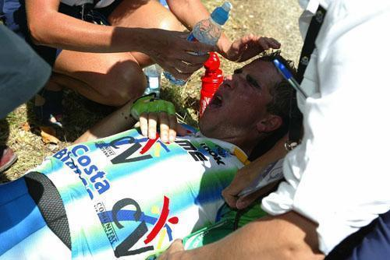 Quelque chose ne va pas. « J’ai dit à deux coéquipiers que je me sentais bizarre, que j’avais une sensation de vertige (…) mes bras étaient comme des leviers de vitesse mous » (2). Poussé par son DS, il attaque dans les pentes du col de Portes, accompagné de Richard Virenque.