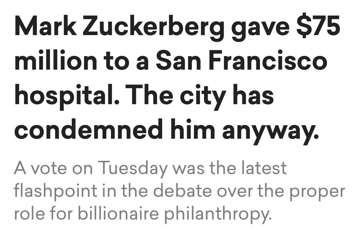 There is an emergent dynamic here where progressives are taking away the status returns from philanthropy, thinking the state will fill the gap, but actually sawing off their own tree branch by cutting grants.