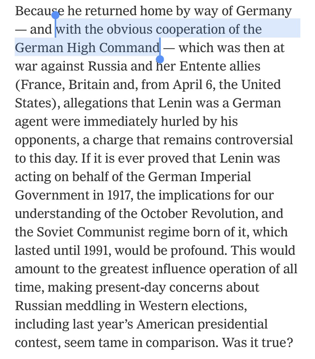 Westerners like John Reed were prominent in the revolution. Germany let Lenin go to Russia. Sutton wrote about Wall Street’s financing of the Bolsheviks.