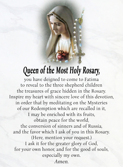 Queen of the Most Holy Rosary, you have deigned to come to Fatima to reveal to the three shepherd children there the treasures of grace hidden…