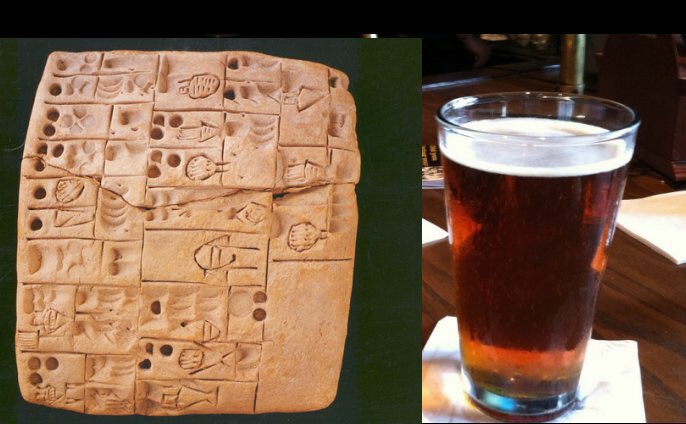 Los sumerios al ser los inventores de la escritora cuneiforme, fueron los primeros en dejar registro escrito de la producción de cerveza e incluso su comercialización. Uno de los ejemplos es una de sus famosas (3100-3000 a.c), dónde se expone la importancia de esta bebida.