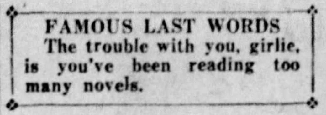 Women will dress logically in one-piece hygienic suits WIRELESS AGE IN YEAR 2025 IS PREDICTED London. A fantastic picture of a world run by wireless in the year 2025 A.D. is painted by Professor A.M. Low, noted educator, who predicts that light will be broadcast by wireless, all means of locomotion will be controlled by wireless, and women will at last dress logically in a one-piece hygienic suit, warmed by wireless. --The Tampa Times, 3 Sep 1925
