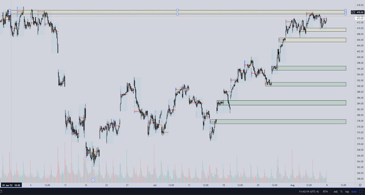 $SPY Chart with no candles, i was able to find all POCs on session volume profile. I usually draw a "box" around POC dependent on volume around the POC. Usually a nice std deviation around POC will be a good zone.