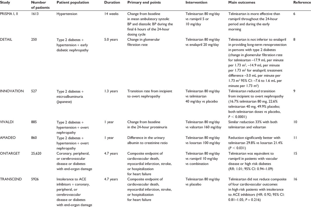 El estudio mas grande fue el ONTARGET 25k ptes👉 Ramipril 10 mg/d vs Telmisartan 80 mg/d vs Ramipril + Telmisartan. Seguimiento ≈ 4.7a