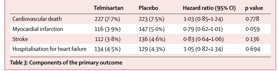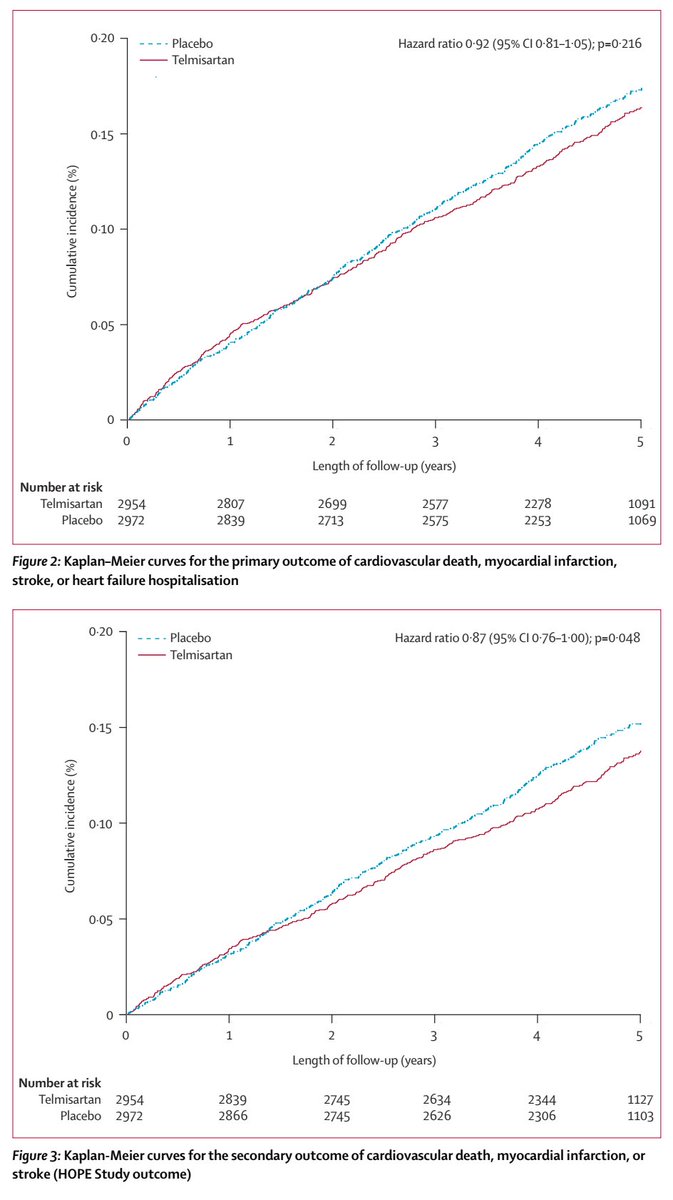 El TRANSCEND, d menor tamaño y similar población👥, ⛔️no pudo demostrar beneficio del Telmisartan vs Placebo en ptes intolerantes a lECA en su pto fina 1ro, aunque si en 2ro HOPE.