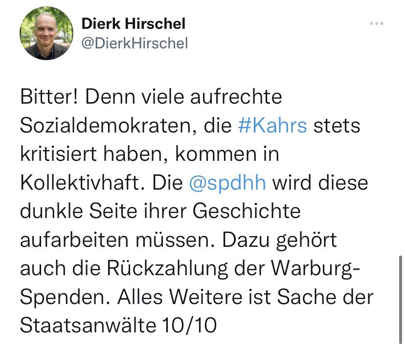 Es geht mir bei Debatte um Scholz, #Warburg, #CumEx und Kahrs übrigens nicht um Parteipolitik. Ich bin einer der wenigen Leute, die auf dem Höhepunkt ihrer Karriere trotz der durchaus vorhandenen Annehmlichkeiten des Politiker Lebens ihren Hut genommen haben, weil ich