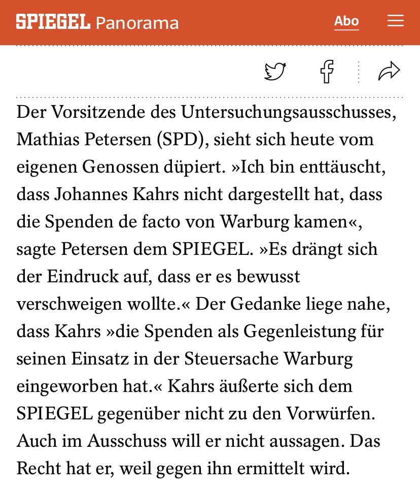 2) Der Warburg PUA Chef Petersen (SPD) sagt selbst: Der Gedanke liege nahe, dass Kahrs »die Spenden als Gegenleistung für seinen Einsatz in der Steuersache Warburg eingeworben hat.« Warum zahlt die SPD die #CumEx Spenden dann nicht zurück?