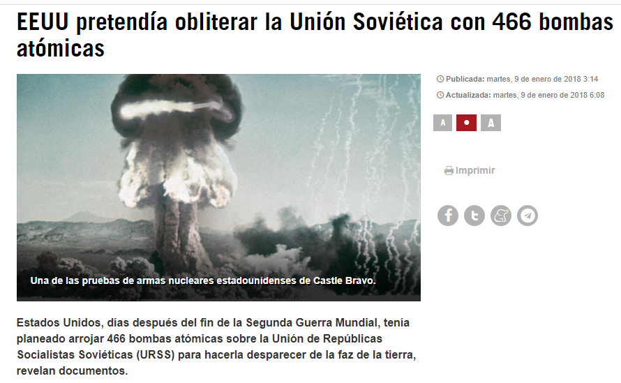 EEUU tenia planeado bombardear 66 ciudades de la URSS con 466 bombas atómicas apenas semanas después de Hiroshima.