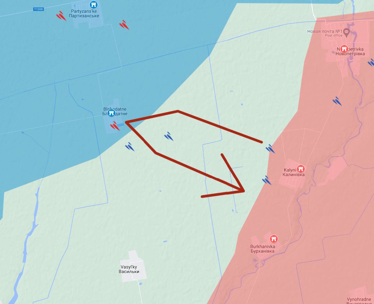 Contrary to what propagandists claim, Russia did not capture Blahodatne. In fact, they made absolutely zero progress and were completely repelled.
