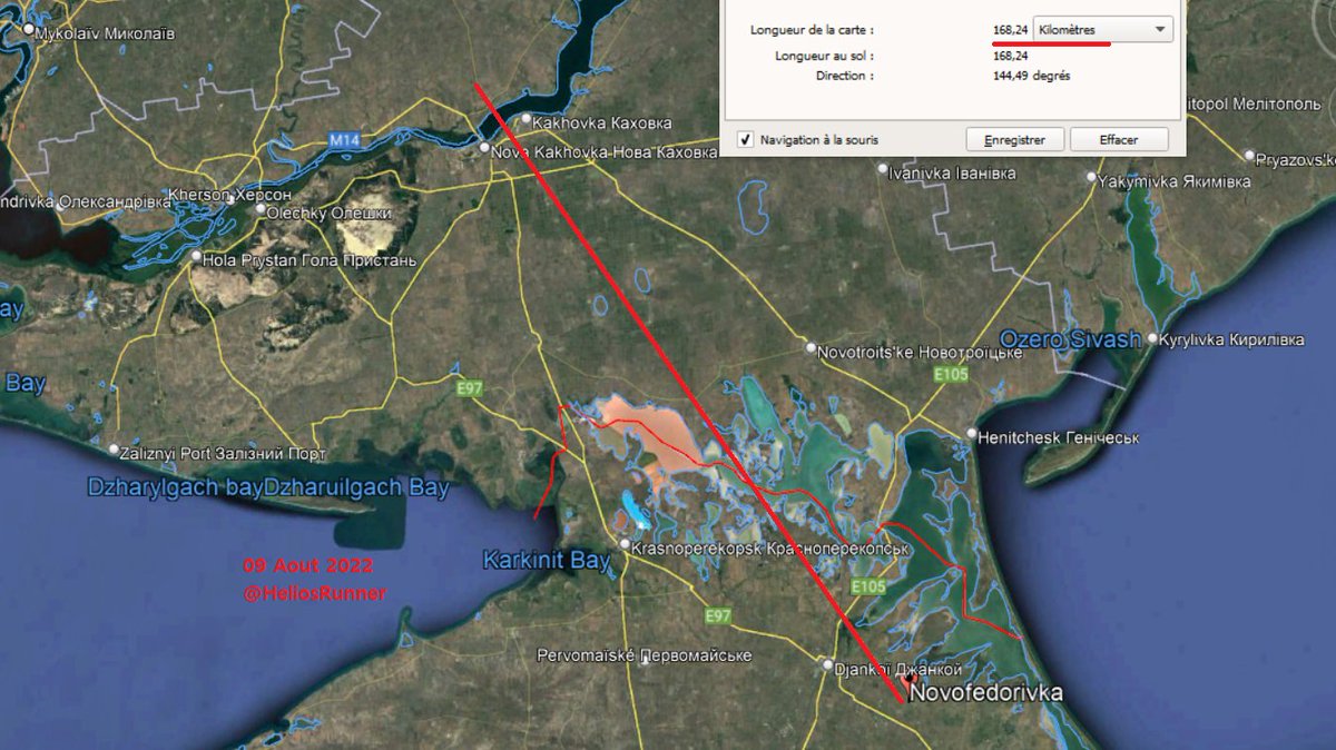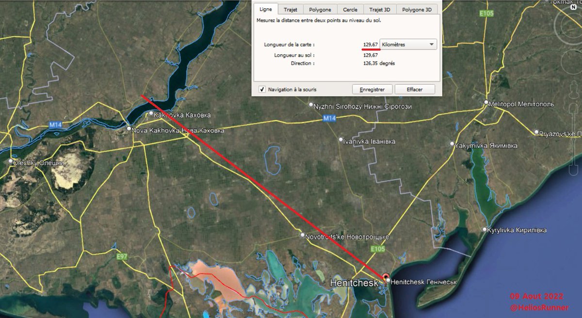 10/ last point i reported 170km but with a large margin of 40 km on top of the 130 on the Google earth pro map (the closest you can get) but in both cases it's : a use of longe range missiles (Ukr still have some) or an attack from the air, or indeed some ATACMS.