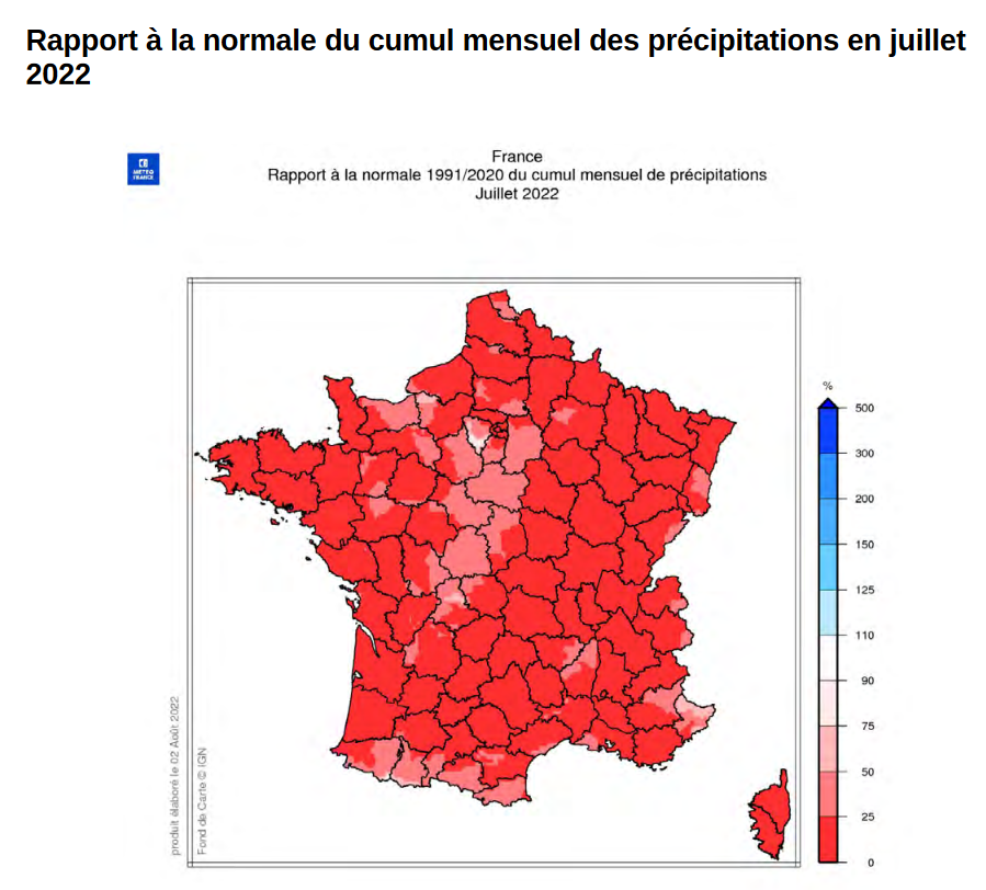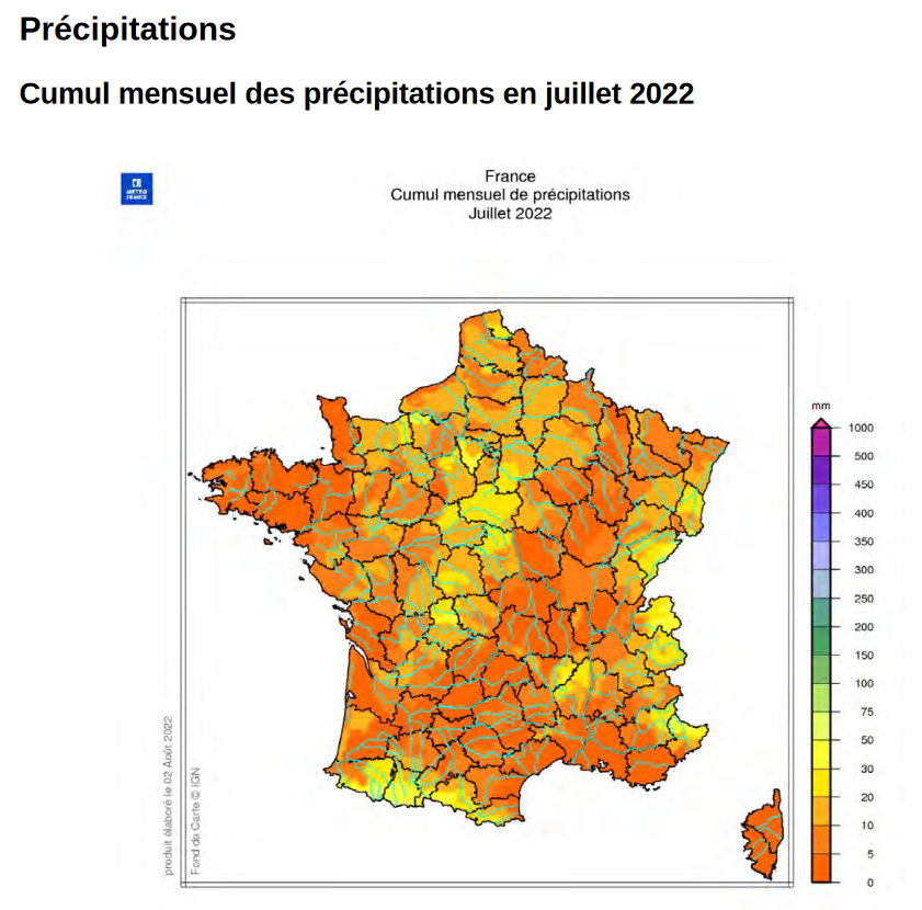 Cette dégradation s'explique notamment par le fait que les précipitations "ont été rares et très faibles, à l’exception de quelques orages en début et fin de mois".