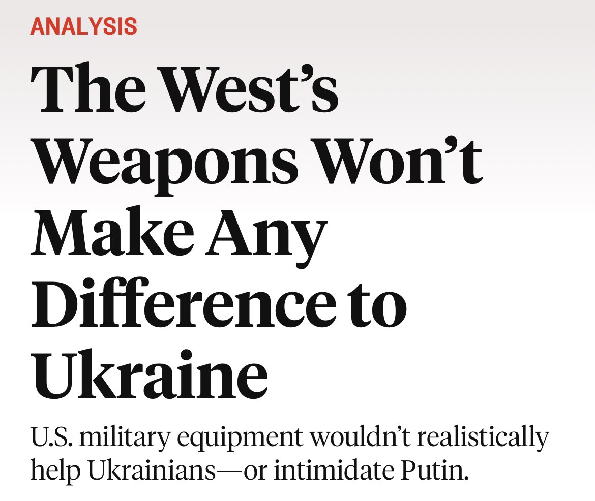 “In short, this war will look nothing like the status quo ante of conflict in Ukraine, and that undermines the first justification for U.S. aid: deterring Russia…