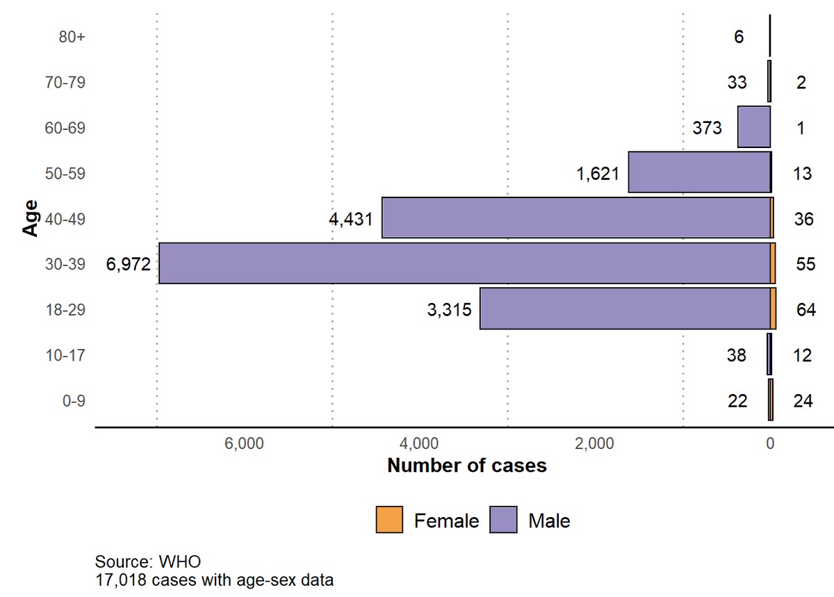 3. Of cases for which @WHO has gender info (n=17,048), 99% of #monkeypox cases are male.