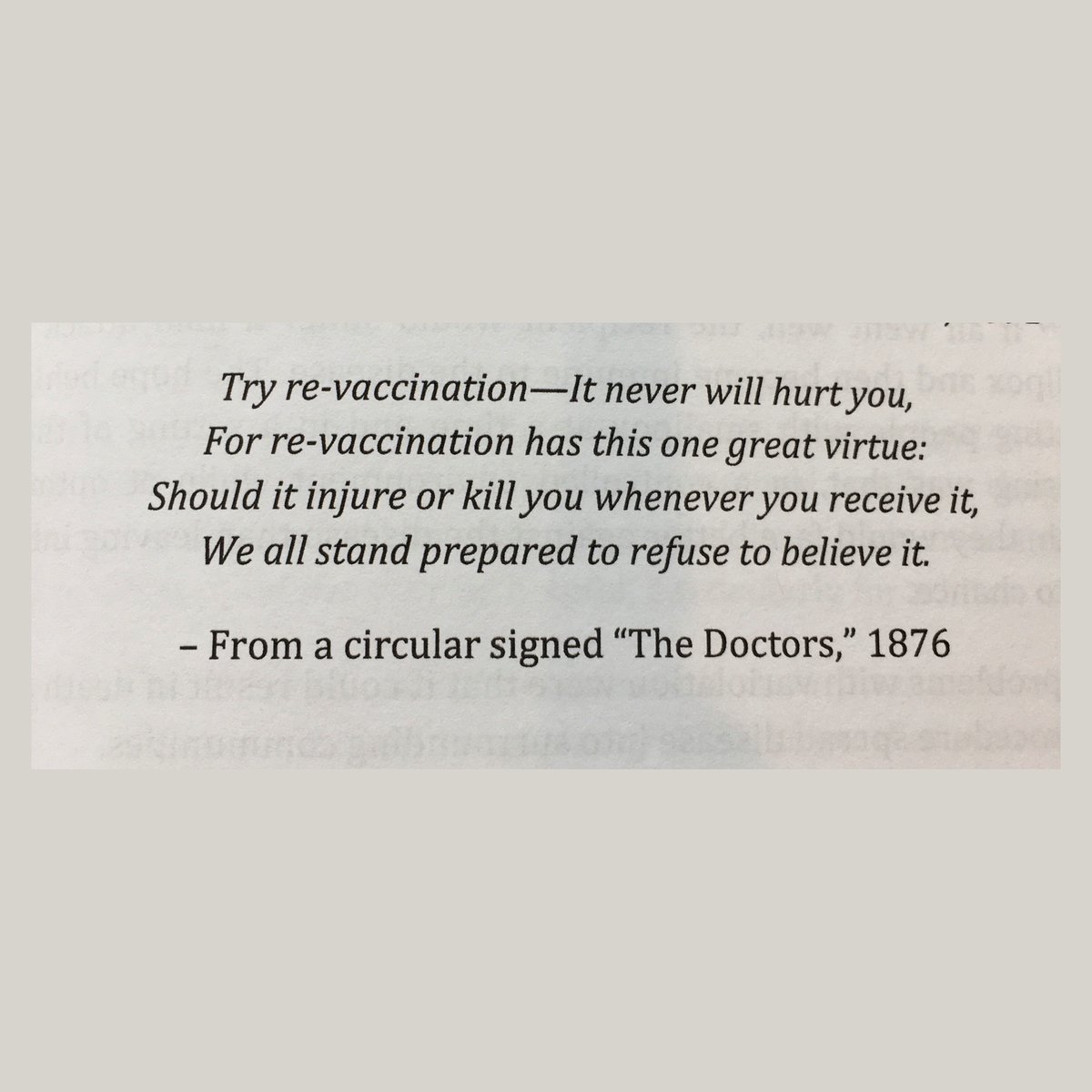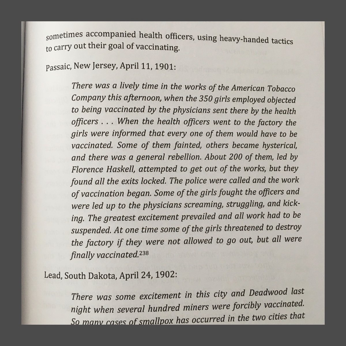 “Deaths as a result of vaccination were often not reported because of an allegiance to the practice. Often a vaccinated person was recorded as having died from another condition such as chicken pox or erroneously listed as unvaccinated.” on the Smallpox vax efforts in the 1800s.