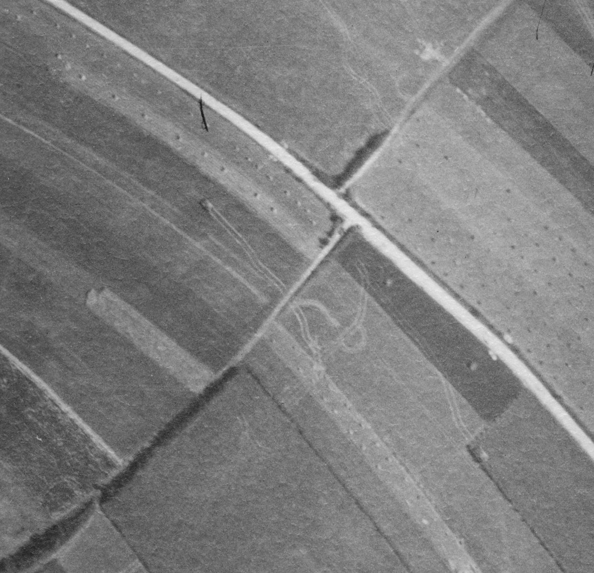 This RAF photo was taken at the height of the battle on 9 Aug. It shows the desparate drama of the fighting that day. The final location of WF is visible as the rectangular field on the left side of the photo. This is near Point 140 east of Estrees-la-Campagne. 2/11